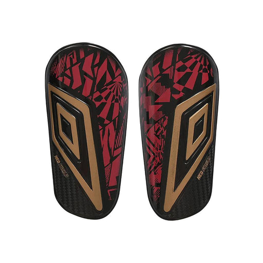 21423U-MU4 Umbro Canilleras Futbol Neo Shield Guard W/Sleeve Black/Gold/Fire Whirl